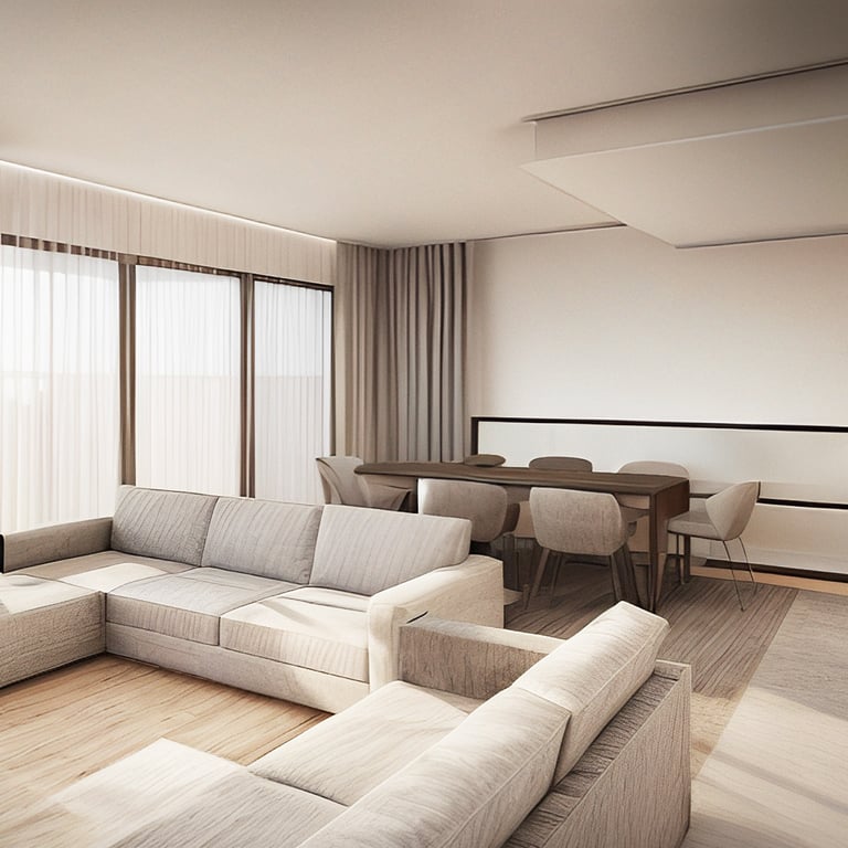 Strefa dzienna została wyposażona w dwie komfortowe sofy, tworzące eleganckie i przytulne miejsce do wypoczynku oraz przyjmowania gości. Użycie naturalnych materiałów i duże przeszklenia wpuszczają do wnętrza dużo światła, wzmacniając więź z otoczeniem i budując poczucie spokoju oraz komfortu.