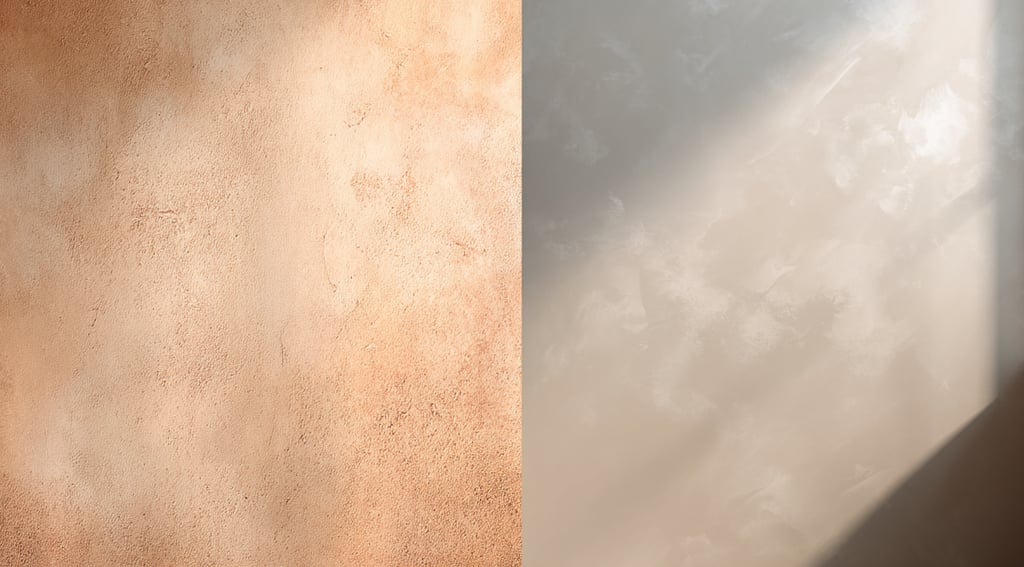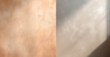 Oba materiały słyną z nieregularnych, powierzchni – w każdym z tych przypadków efekt osiągamy na różne sposoby. Limewash, choć formalnie jest farbą, nie daje efektu kryjącego – wręcz przeciwnie, powierzchnia ściany pozostaje lekko widoczna spod warstwy pigmentu. Daje to naturalne, falujące przejścia tonalne, przywodzące na myśl ściany starego włoskiego domu.